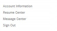 3、登錄賬戶后,可以看到左邊有幾個(gè)選項(xiàng),點(diǎn)擊進(jìn)入后,分別可以看到你個(gè)人賬戶的最新消息、你的個(gè)人簡歷中心、信息中心以及注銷賬戶出口,如圖一。如想查看個(gè)人簡歷的職位投遞狀況,可點(diǎn)擊“Resume Center”進(jìn)入查看,頁面便會顯示你的個(gè)人簡歷信息,如圖二。