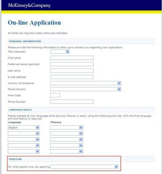 由于目前麥肯錫2013年校園招聘的網(wǎng)申入口處于關(guān)閉狀態(tài),無法展示2013年的網(wǎng)申程序。下面以2011年校園招聘的流程為例,讓大家大概了解一下麥肯錫的網(wǎng)申程序是什么樣的。