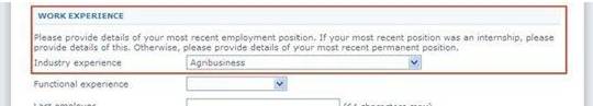 5、工作經(jīng)驗部分,你如果選擇 no work experience,這部分是不會下拉的,但是如果選擇了某一類的工作經(jīng)驗,就會出現(xiàn)下拉菜單,然后繼續(xù)填寫。
