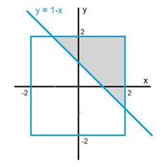 這道題我是蒙對的-.- 標(biāo)準(zhǔn)做法是先畫出y=1-x的線,上側(cè)陰影部分就是y>1-x,其所占比例為9/32: