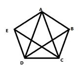 17)在下圖的多邊形ABCDE中從哪一點(diǎn)出發(fā),可以遍歷圖上的每條邊一次,而且僅遍歷一次