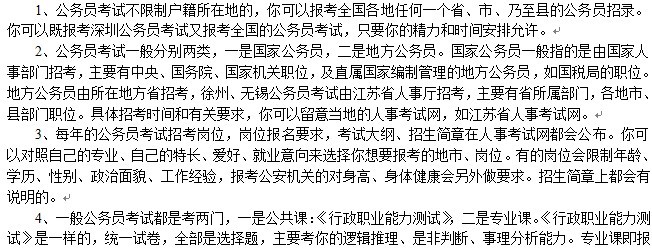 考不同的單位和崗位會(huì)考不同的專業(yè)課,如報(bào)考政府文秘類的考《申論》,報(bào)考法院的考《法律知識》,報(bào)考警察的考《公安業(yè)務(wù)知識》等,有些省考另外會(huì)多考一門《公共基礎(chǔ)知識》(也叫《綜合知識》),專業(yè)課和《公共基礎(chǔ)知識》都是客觀題,也就是全部是簡答題和論述題。