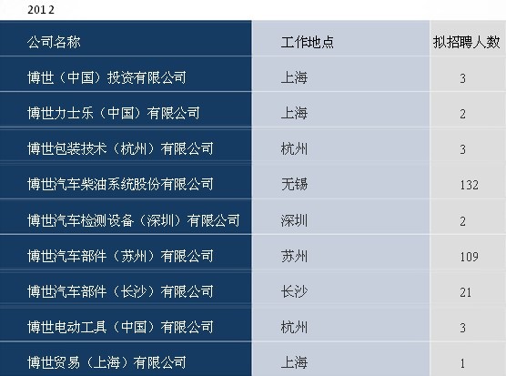 下面應屆畢業(yè)生網(wǎng)YJBYS為您分析近三年博世校招情況,以供了解: