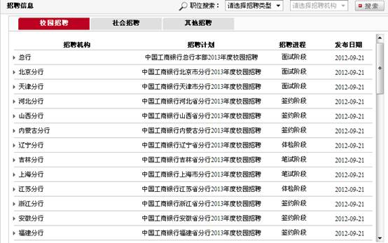 (注意:必須留意該行的招聘進程是否處于網(wǎng)申階段,如果已經(jīng)錯過就不能再進行網(wǎng)上申請)