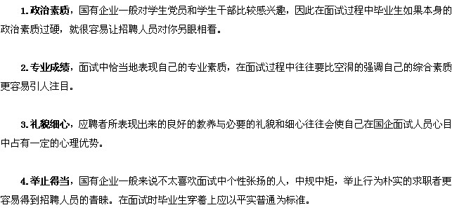 國(guó)有企業(yè)面試一般還要注意以下幾點(diǎn):